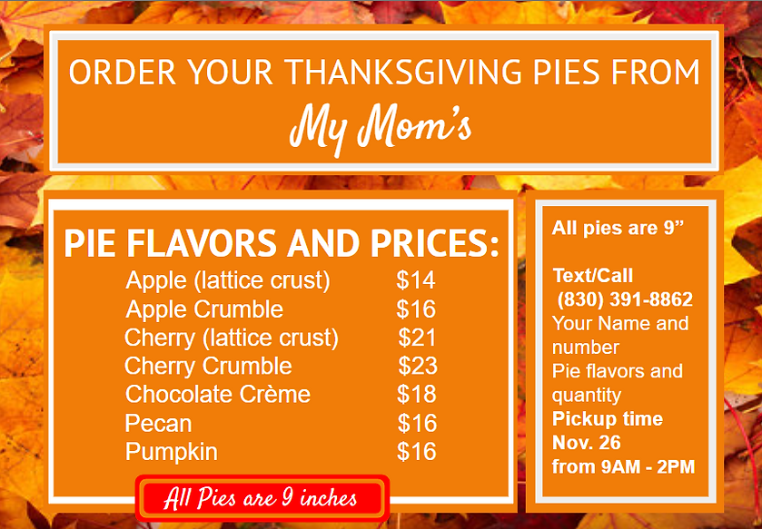 Don't forget to order your Thanksgiving Pies!